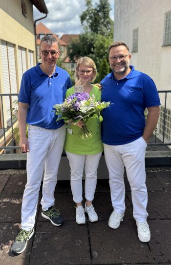Gleichzeitig freue ich mich, Ihnen mitteilen zu können, dass unsere langjährige Mitarbeiterin, Zahnärztin Sandra Kober, meine Funktion als Gesellschafterin bei den "Zahnärzten in der Bahnhofstraße" übernehmen wird und dass Anne Billinger ab sofort das Praxisteam als angestellte Zahnärztin verstärken wird.